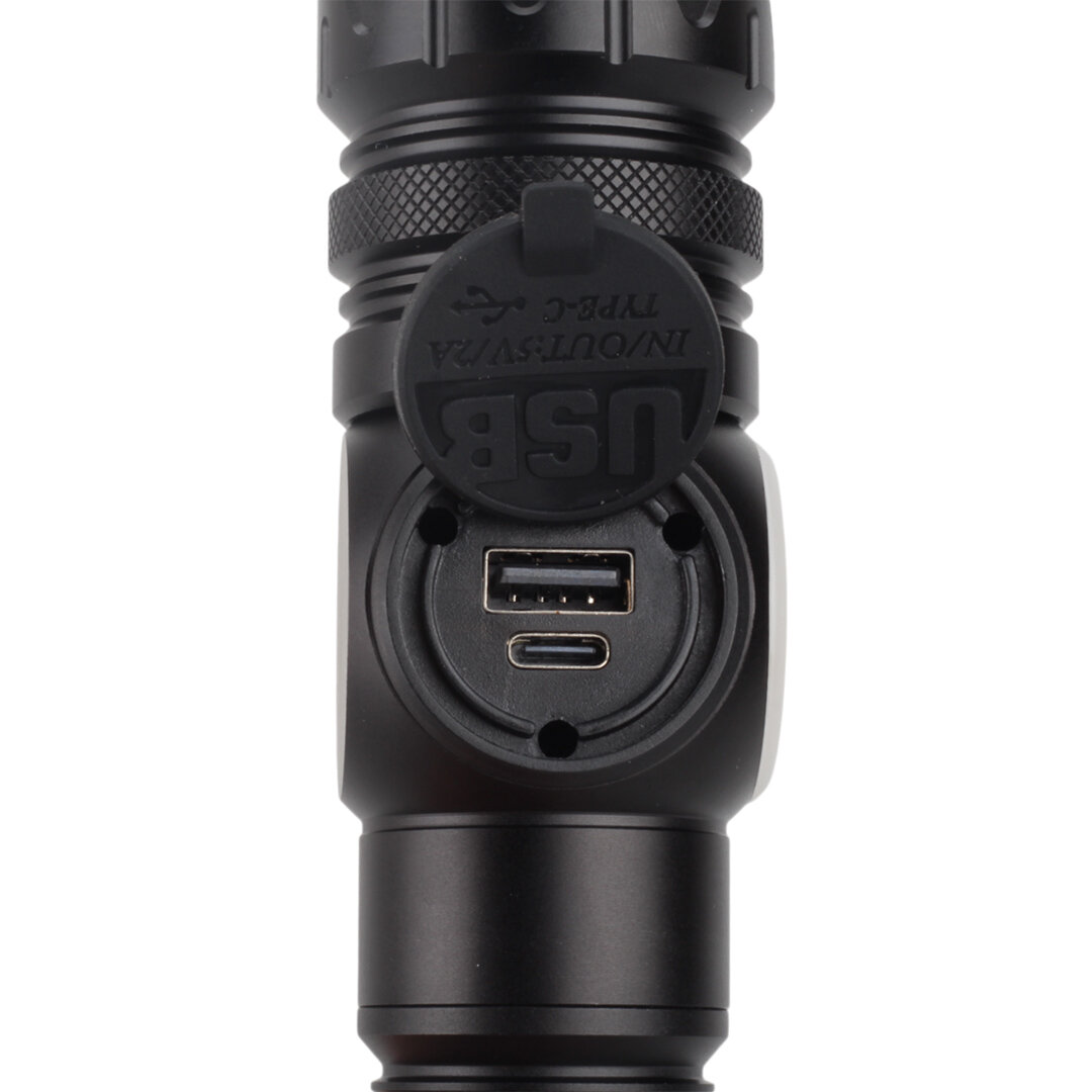 Aç/Kapa düğmesine basınca öndeki 10W Led sırasıyla; %100 Işık, %50 Işık, %30 Işık, SOS, Flaşör modlarında yanar.